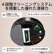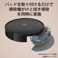 本体にパッドを装着し、1回の走行で掃除機がけと拭き掃除を同時に行います。