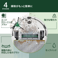 4段階クリーニングシステムでは、最大70倍強力になったパワーリフト吸引*1、複数の床に対応した毛のブラシ、エッジクリーニングブラシがゴミやホコリを一掃し、マイクロファイバーモップパッドが床をピカピカに仕上げます。