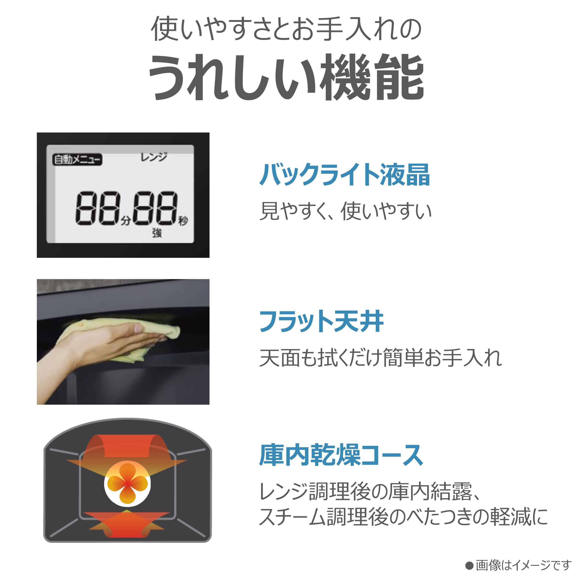 TOSHIBA オーブンレンジ 26L ブラック [ワイド&フラット角皿式スチームモデル] ER-D70B-K
