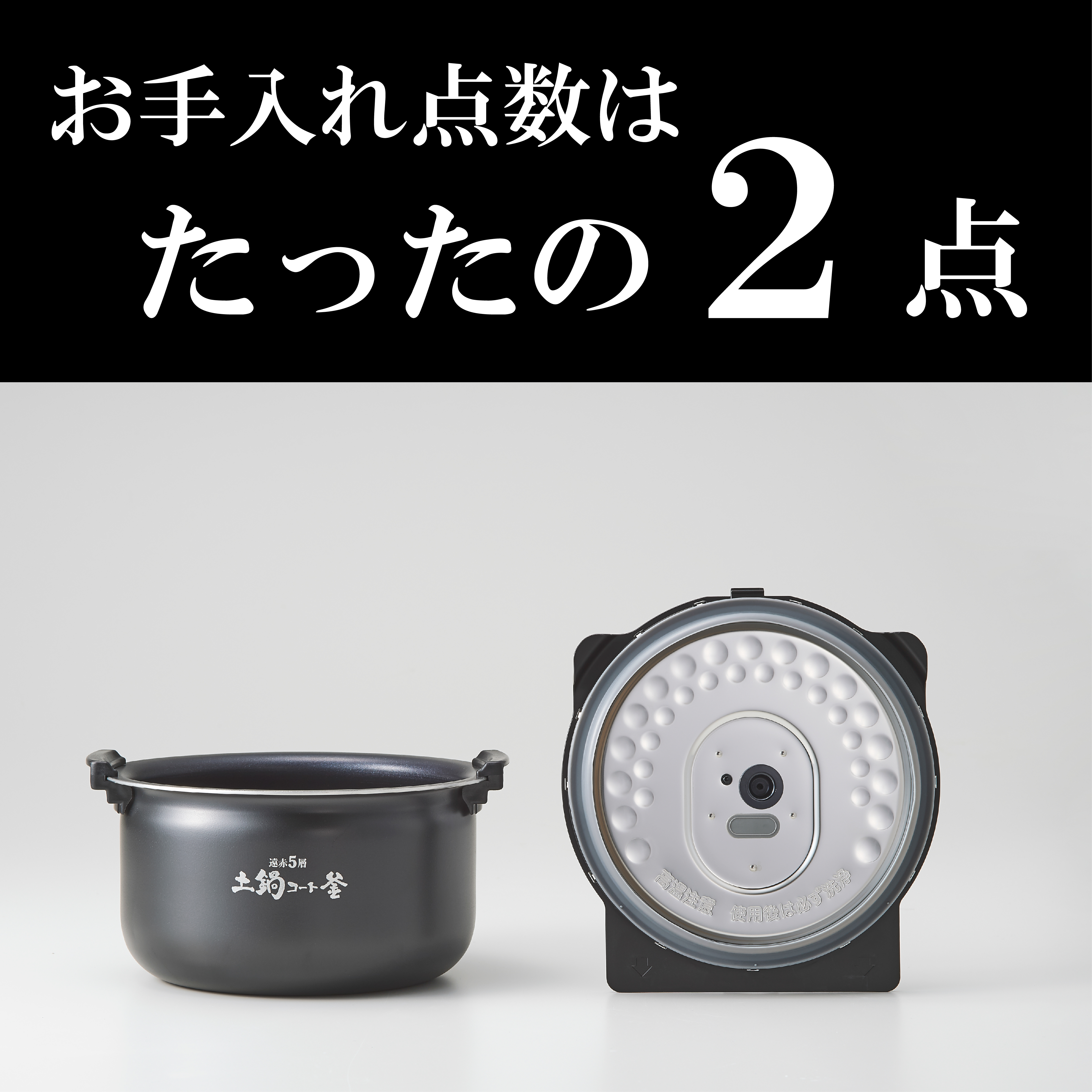 お手入れや操作がより簡単に、使いやすくなる工夫を詰め込みました。ワンタッチで着脱できる内ぶたや、お手入れ点数2点、内ぶたは食器洗い乾燥機対応など、最小限のお手入れで、おいしく便利にごはんを楽しめます。