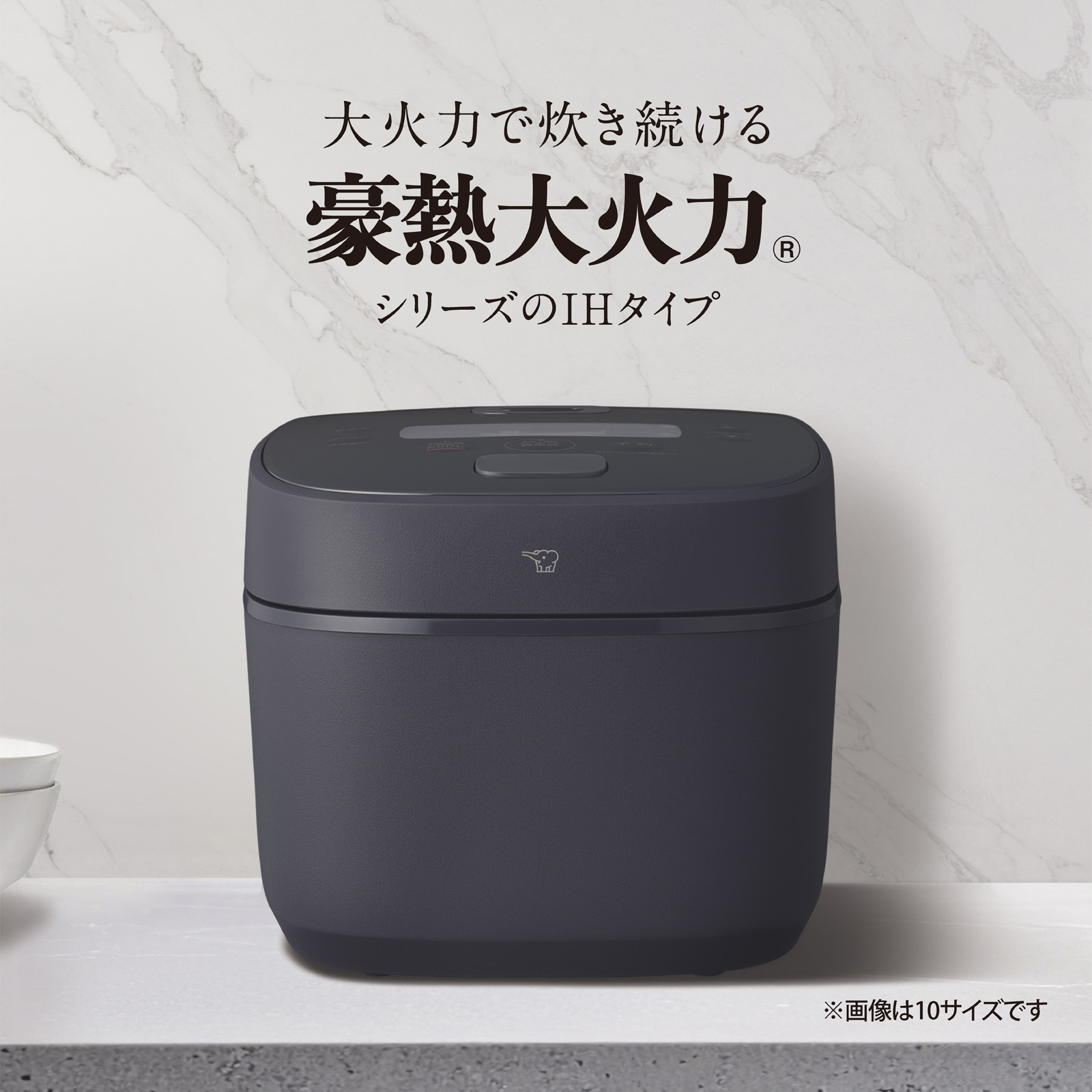 「豪熱大火力」シリーズのIH炊飯ジャーでキッチンに置きやすいコンパクトサイズです。