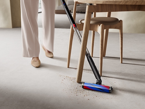 フラットに寝かせて使える設計で、約9.5cmの低い家具下の奥深いスペースまで掃除できます。