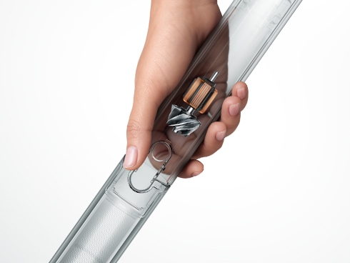 毎分最大140,000回転し、大きなゴミから微細なホコリまで吸い取ります。