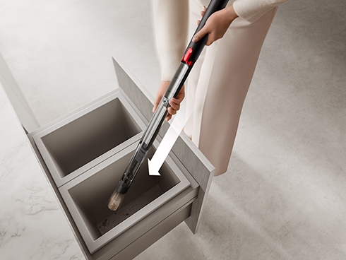新しいシリンジ式で圧縮されたゴミを排出する為、ホコリが舞い上がりません