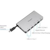 ・ギガビット イーサネット ポートを使用してインターネットに迅速かつ安全に接続します・ホスト デバイスに 3 つの USB-A 3.2 Gen 1 ポート (1 つは急速充電) と 1 つの USB-C ポートを追加します・USB-A および USB-C ポートごとに最大 5Gbps のデータ転送速度をサポートします・USB-CポートにUSB-Cデバイスまたは電源アダプタを接続・USB-C (3.2 Gen 1 SuperSpeed 5Gbps)ポートは電源供給パススルーに対応**。・USB-C (3.2 Gen 1 SuperSpeed)コネクタは、最大100Wのアップストリーム****およびPower Delivery 3.0 Fast Role Swap****の電力供給に対応・Thunderbolt 3ホスト対応・取り外し可能なUSB-Cケーブルはアダプタに簡単に収納でき、省スペース化を実現・Windows、MacOS、Chrome OSに対応