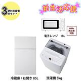 エルソニック 新生活3点セット [西日本専用] 直冷式 85L冷蔵庫/5kg洗濯機/単機能60Hzレンジ/ホワイト 26SHIN-A3W60-ESET