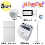 エルソニック 新生活3点セット [東日本専用] 直冷式 85L冷蔵庫/5kg洗濯機/単機能50Hzレンジ/ホワイト 26SHIN-A3W50-ESET