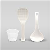 付属品取扱説明書(保証書付き)、計量カップ180cc(1合)、しゃもじ、おかゆ用おたま、電源コード