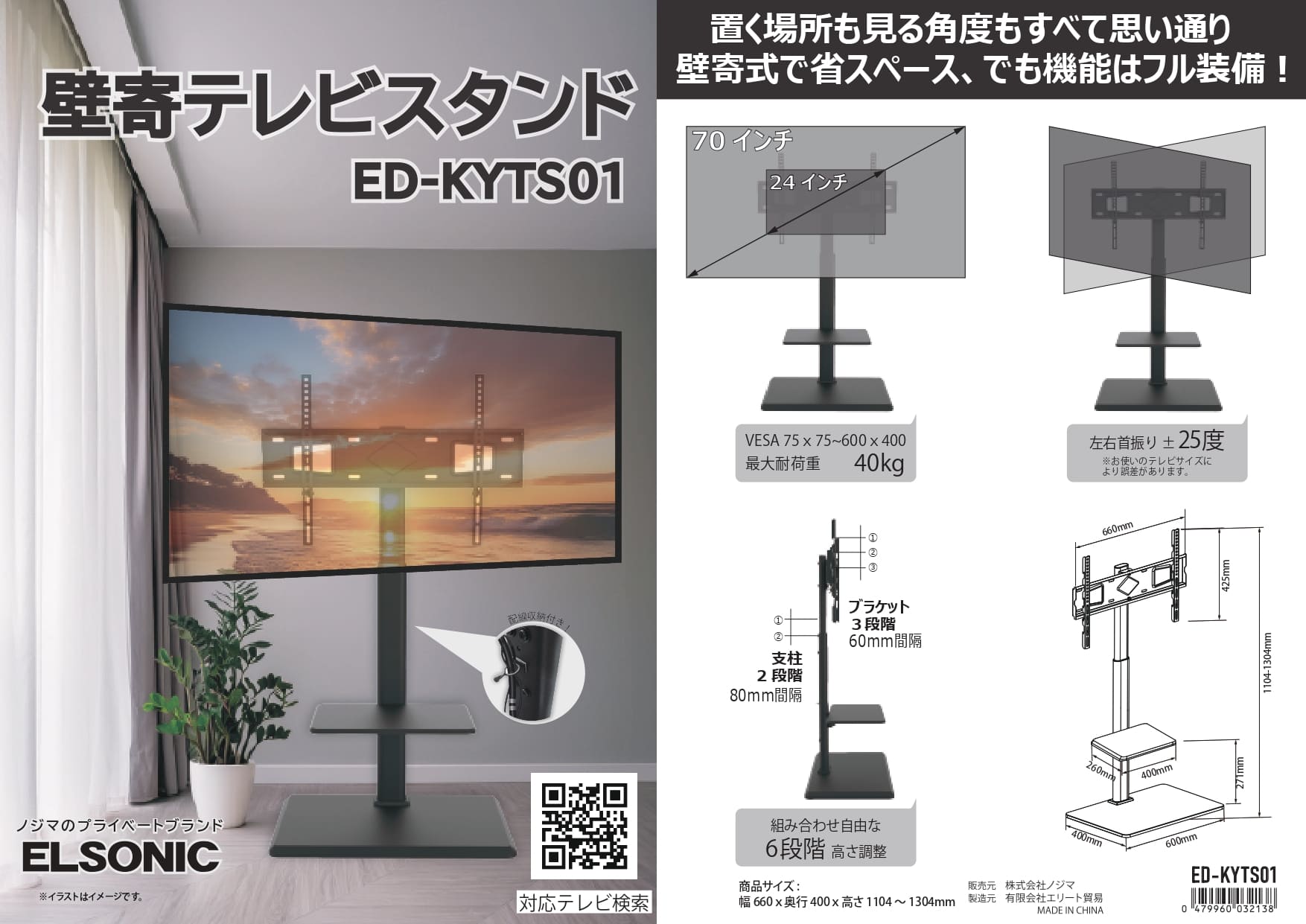 ELSONIC 壁寄せテレビスタンド ブラック ED-KYTS01