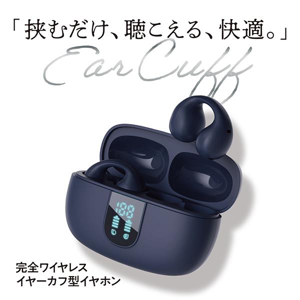 ELSONIC イヤーカフイヤホン【イヤーカフ型/Bluetooth/USB-C充電/周りの音が聞こえる/イヤホン/ネイビー】 EN33KF01-NB