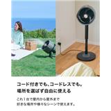 充電式バッテリーを内蔵しており、コードレス利用可能なため、屋内でも屋外でも場所を選ばず、好きな場所へ持っていけます。庭でのガーデニング、キャンプ、子供のスポーツの応援などこれ一台で様々なシーンで使えます。