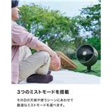 細かな粒子のミストを風と一緒に出せるミスト機能を搭載しており、屋外の生暖かい風に清涼感をプラスすることで、涼しく快適な環境を提供します。