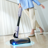 青色LEDヘッドライトが床のゴミやホコリを浮かび上がらせ、可視化することで取り残しを防ぐ