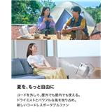 ドライミストとパワフルな風を独り占め。屋内でも屋外でも使えるミスト機能付きコードレスポータブル扇風機