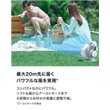 コンパクトなのにパワフル。利用シーンにあわせてソフトな風からブーストモードまで6段階からお好みの風量に調整でき、最大20m先まで風を届けます。