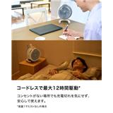 コードレスで最大12時間使えるので、コンセントがない場所でも充電切れを気にせず涼しく快適に過ごせます。充電アダプターをつけて使えば時間制限なく使えます。