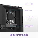 Intel Core Ultra プロセッサー (シリーズ 2) に対応したATXゲーミングマザーボードです。高効率な電源設計と冷却機構を搭載し、Thunderbolt 4やDDR5、PCIe 5.0など最新規格に対応。オールブラックの洗練された外観が、美しいPCビルドを実現します。