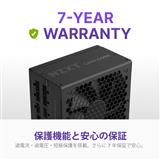 80 PLUS Gold認証取得、ATX 3.1およびPCIe 5.1対応の850W電源ユニット。静音性に優れたFDBファンと105℃対応の高耐久コンデンサを採用し、最新GPUに安定した電力を供給します。