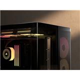 iCUE LINK対応ハブを標準搭載し、対応機器をケーブル1本で接続。発光パターンや回転数を自在に制御し、美しい内部と統一感あるライティングを実現します。