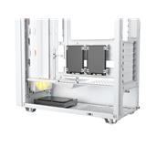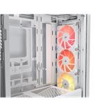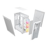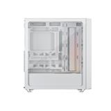 広い内部スペースと3基のRS120 ARGBファンを備えたミドルタワーPCケース ホワイトモデルです。最大360mmラジエーター対応、背面コネクタ設計マザーボードへの対応など、組み立てやすさと冷却性能を両立しています。