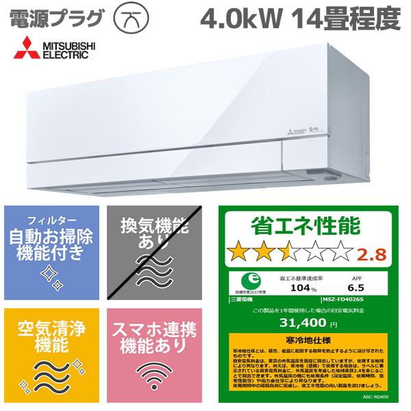 MITSUBISHI ルームエアコン 霧ヶ峰 「FDシリーズ」【主に14畳/4.0KW/200V/暖房プレミアムモデル/エモコテック搭載/2026年モデル】 MSZ-FD4026S-W-ESET