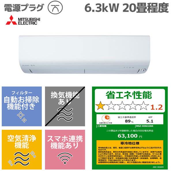 MITSUBISHI ルームエアコン 霧ヶ峰 「XDシリーズ」【主に20畳/6.3KW/200V/暖房強化型/コンパクト設計/2026年モデル】★大型配送対象商品 MSZ-XD6326S-W-ESET