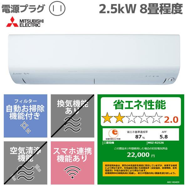 MITSUBISHI ルームエアコン 霧ヶ峰 Rシリーズ【主に8畳/2.5KW/100V/2026年モデル】 MSZ-R2526-W-ESET