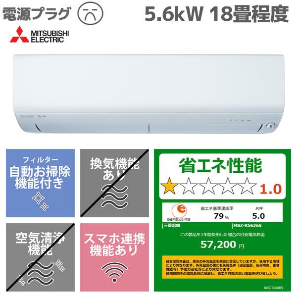 MITSUBISHI ルームエアコン 霧ヶ峰 Rシリーズ【主に18畳/5.6KW/200V/2026年モデル】 MSZ-R5626S-W-ESET