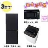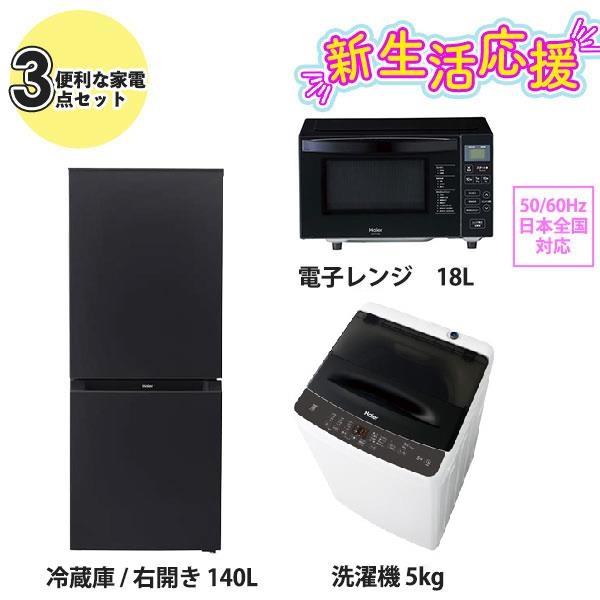 ハイアール 新生活3点セット ファン式140L冷蔵庫/5kg洗濯機/ヘルツフリー18L電子レンジ ブラック 26SHIN-G3K-ESET