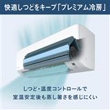 温度を下げる除湿と寒くなりにくい除湿、寒くなった空気をあたためて戻す除湿などを自動的に切換え、運転はじめから室温が安定した後までシーンを選ばず快適な除湿を行います。