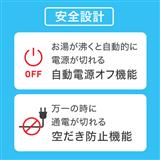 転倒してもお湯がこぼれ出にくい構造となっておりますが、万一転倒した場合は、お湯がこぼれ出る場合があります。