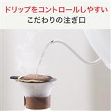 狙った場所に、注ぎたい分量をドリップできるこだわりの注ぎ口形状。注ぎ口先端の角度にもこだわり、ドリップした後の湯切れが良いです。