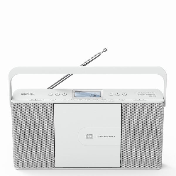 WINTECH CDクロックFMラジオ デュアルアラーム スリープタイマー スリムデザイン ホワイト CDC-810W
