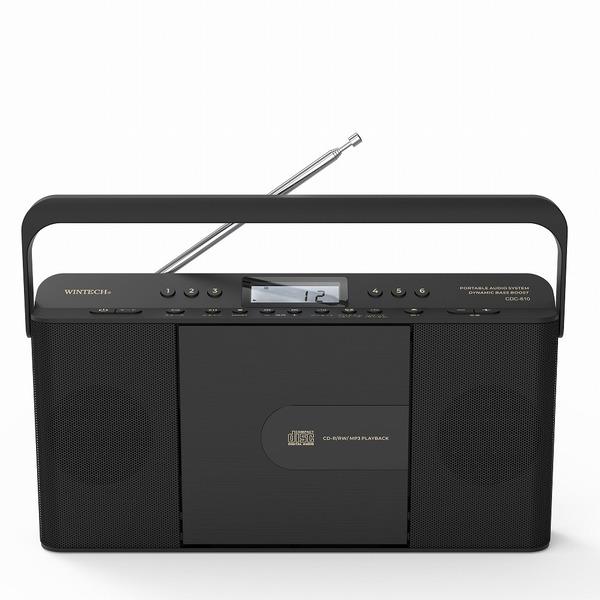 WINTECH CDクロックFMラジオ デュアルアラーム スリープタイマー スリムデザイン ブラック CDC-810K