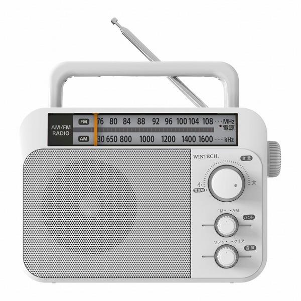 WINTECH AM/FMホームラジオ ワイドFM対応 大型文字盤&大型ダイヤル 2段階音質切替 ホワイト HR-K74