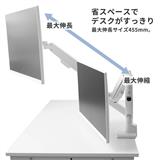 3関節のガススプリング式アームにより、動画鑑賞や事務作業、ゲームなど様々な用途に合わせながら、自由自在にモニターの角度や高さを調整できます。スリムなデザインはお部屋に馴染み、インテリアを損ないません。力を入れずに軽く触れるだけで簡単に調整ができるので、ストレスなくご利用いただけます。女性や子供でも簡単に設置可能なため、あらゆる方のご利用に対応します。ゲームだけではく、ビジネスや学業での利用にもオススメのモニターアームです。