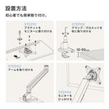 3関節のガススプリング式アームにより、動画鑑賞や事務作業、ゲームなど様々な用途に合わせながら、自由自在にモニターの角度や高さを調整できます。スリムなデザインはお部屋に馴染み、インテリアを損ないません。力を入れずに軽く触れるだけで簡単に調整ができるので、ストレスなくご利用いただけます。女性や子供でも簡単に設置可能なため、あらゆる方のご利用に対応します。ゲームだけではく、ビジネスや学業での利用にもオススメのモニターアームです。