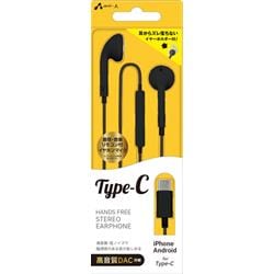 エア-ジェイ Type-C ステレオイヤホン【マイク付き/iPhone/Android for Type-C/インナーイヤー型/DAC搭載/ブラック】 HACES45-BK