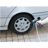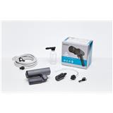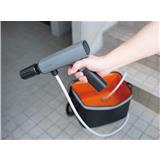充電式でコンセントとケーブルの長さなどを気にせず使用することができ、バケツからホースまたはペットボトルを装着することで水栓いらず。場所を選ばない洗浄が可能です。