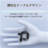 小型デザインと付属のアジャスターで快適な音楽試聴環境を実現。小型化されたハウジングで、どの耳にもフィットする快適な装着感/セレーションケーブル・ケーブル表面の細かい溝により絡みの原因である摩耗を低減。ケーブルが絡みにくいのでリスニング時や持ち歩きにも快適/付属のアジャスター・お好みに合わせてケーブルの長さに調節が可能。各色のイヤホンと同色の4色のアジャスターが付属/ケーブルスライダー・ケーブルスライダーをスライドすることで左右のケーブルの長さを調節