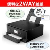背面給紙トレイと前面給紙カセットの2か所に用紙を同時にセット可能。背面給紙トレイは、はがきや名刺などの印刷に便利です。