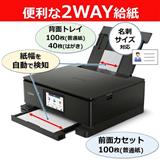 背面給紙トレイと前面給紙カセットの2か所に用紙を同時にセット可能。背面給紙トレイは、はがきや名刺などの印刷に便利です。排紙トレイは自動で伸縮します。
