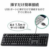 PCに挿すだけのカンタン接続で、すぐに使用することができる有線フルキーボード。