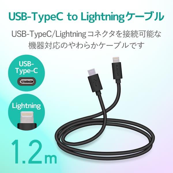 ELECOM USB C-Lightningケーブル やわらか 1.2m ブラック MPA-CLY12BK