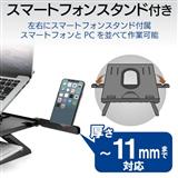 ■スマートフォンスタンド機能がノートPCスタンドの左右に付いているので、スマートフォンをPCと並べてスタンドすることができます。