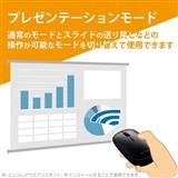 ■プレゼンテーションモードを有効にすると、通常のマウスモードと、スライド送り・戻しなどを操作できるプレゼンテーションモードとを切り替えて使用できます。プレゼンテーションモードでのボタンの詳細動作、スクロールやカーソル移動の無効などをカスタマイズ可能です。