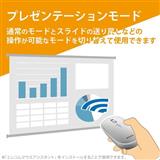 ■プレゼンテーションモードを有効にすると、通常のマウスモードと、スライド送り・戻しなどを操作できるプレゼンテーションモードとを切り替えて使用できます。プレゼンテーションモードでのボタンの詳細動作、スクロールやカーソル移動の無効などをカスタマイズ可能です。