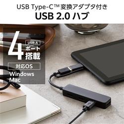 ELECOM USB Type C ハブ/USB3.1(Gen1)/USB-Aメス3ポート/USB Power Delivery対応Type-C1ポート/ケーブル30cm/ブラック U3HC-T431P5BK