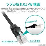 ■ツメ折れ防止プロテクターと屈曲に対する耐久性が高い素材のコネクターを採用したダブル構造で、ツメが折れにくいLANケーブルです。 ※1000回の屈曲検査に合格(メーカー検証)