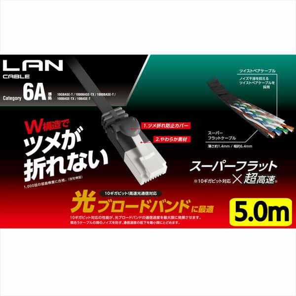 ELECOM LANケーブル Cat6A ツメが折れない フラット 5m ブラック RJ45コネクタ 10Gbps RoHS指令準拠(10物質) LD-GFAT-BK50